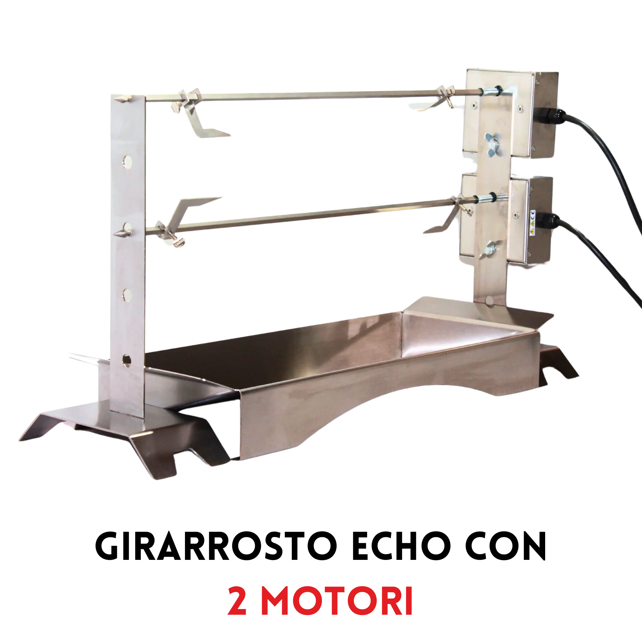 🔥 Girarrosto Echo 1 asta compatto inox 304. Motoriduttore 6W, rotazione 2,5rpm, portata 6kg. Dimensioni L75×P21×H35cm altezze regolabili. Perfetto per...